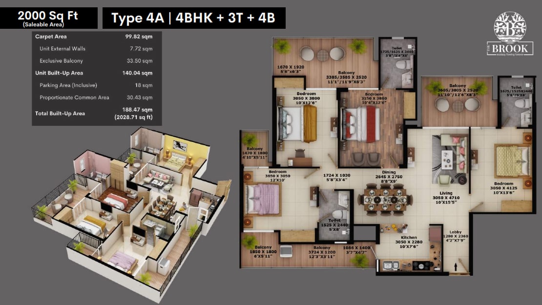Noida & Delhi are well connected with this residential landmark. Great India Place (Noida) mall is also located closer to the development. According to Fusion the Brook Floor Plan the property offers 1115 sq.ft. to 2000 sq.ft. to the property buyers.